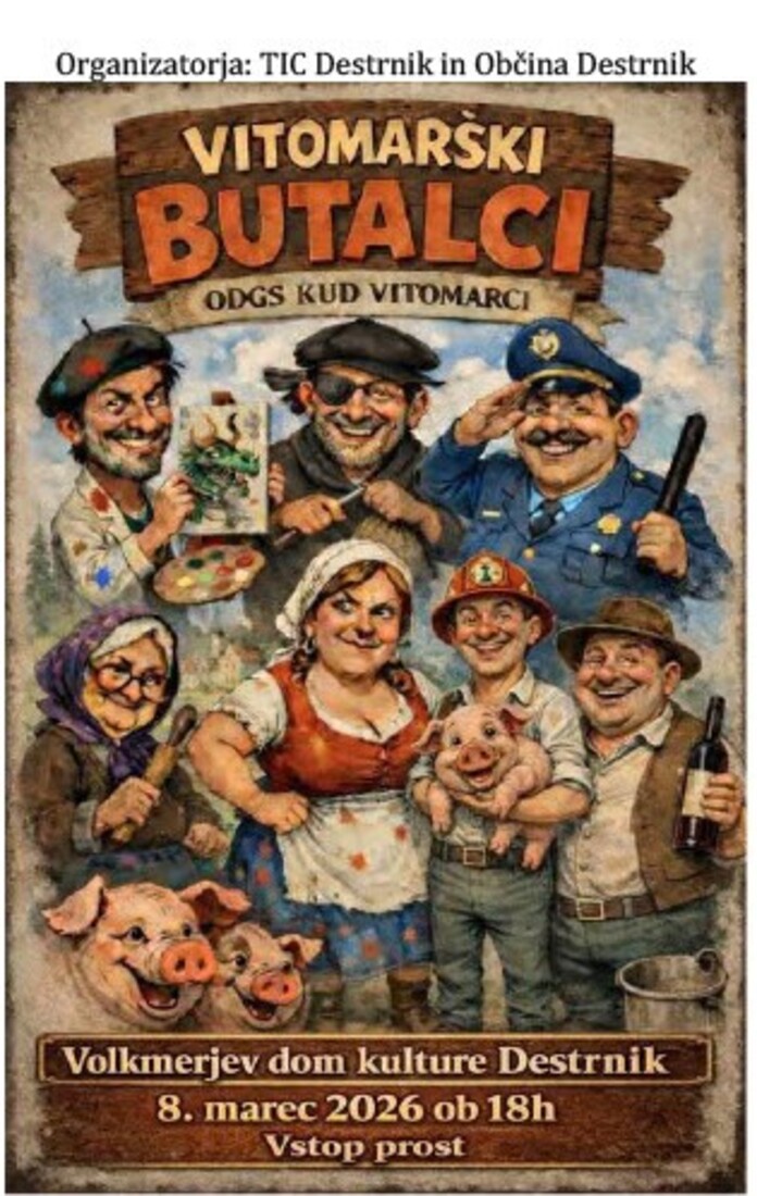 VABILO - "VITOMARŠKI BUTALCI PRIHAJAJO V DESTRNIK" - 8. MAREC 2026 OB 18. URI V VOLKMERJEVEM DOMU KULTURE - VSTOP PROST